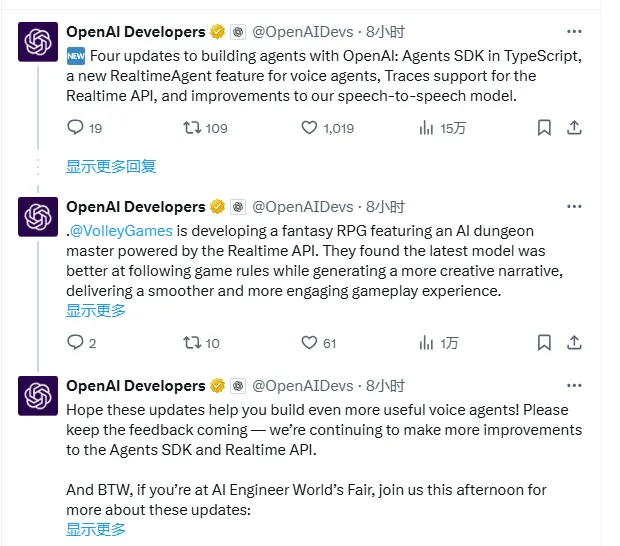 就在上周,OpenAI 刚宣布了对其 AI Agent 开发工具进行一系列重大升级。OpenAI 称已在其 Agents SDK 中添加 TypeScript 支持。此举使 JavaScript 和 Node.js 环境中的开发人员能够参与 Agent 开发。
